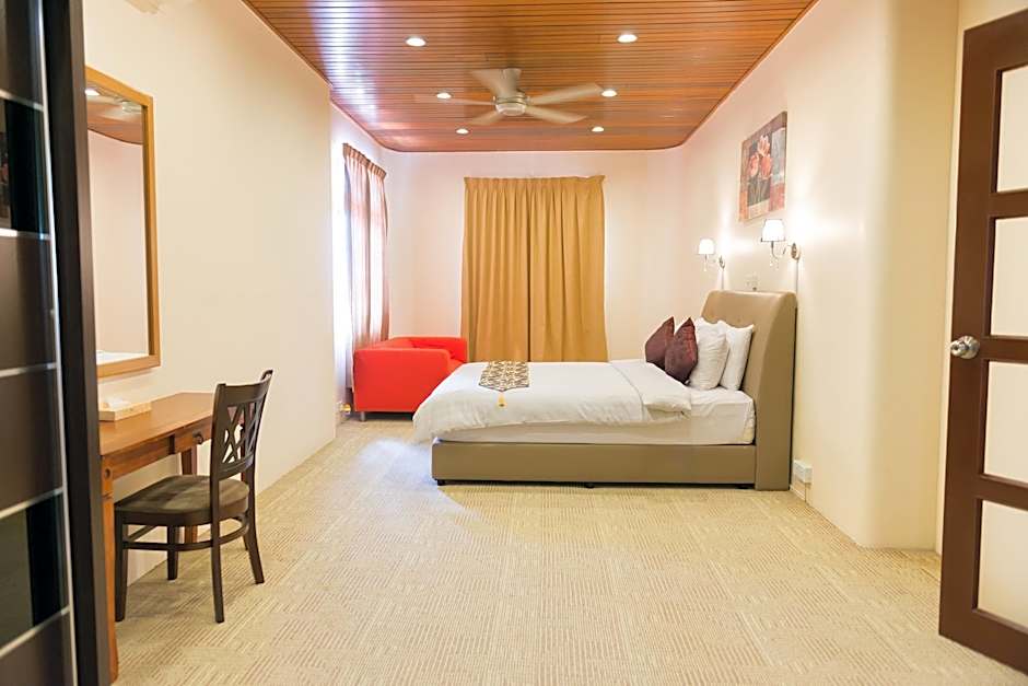 This air-conditioned suite also has a fan option. It opens up to views of the garden and the sea. It is fitted with a flat-screen satellite TV, desk and a sofa.